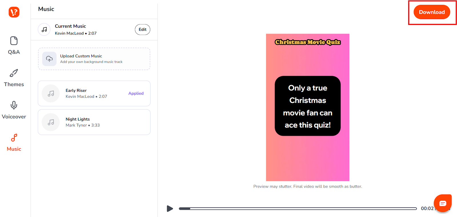 Once generated, you’ll see the questions that will be used in the video. You can read through them, make edits, fix wordings, swap questions and even download the questions as a CSV file.