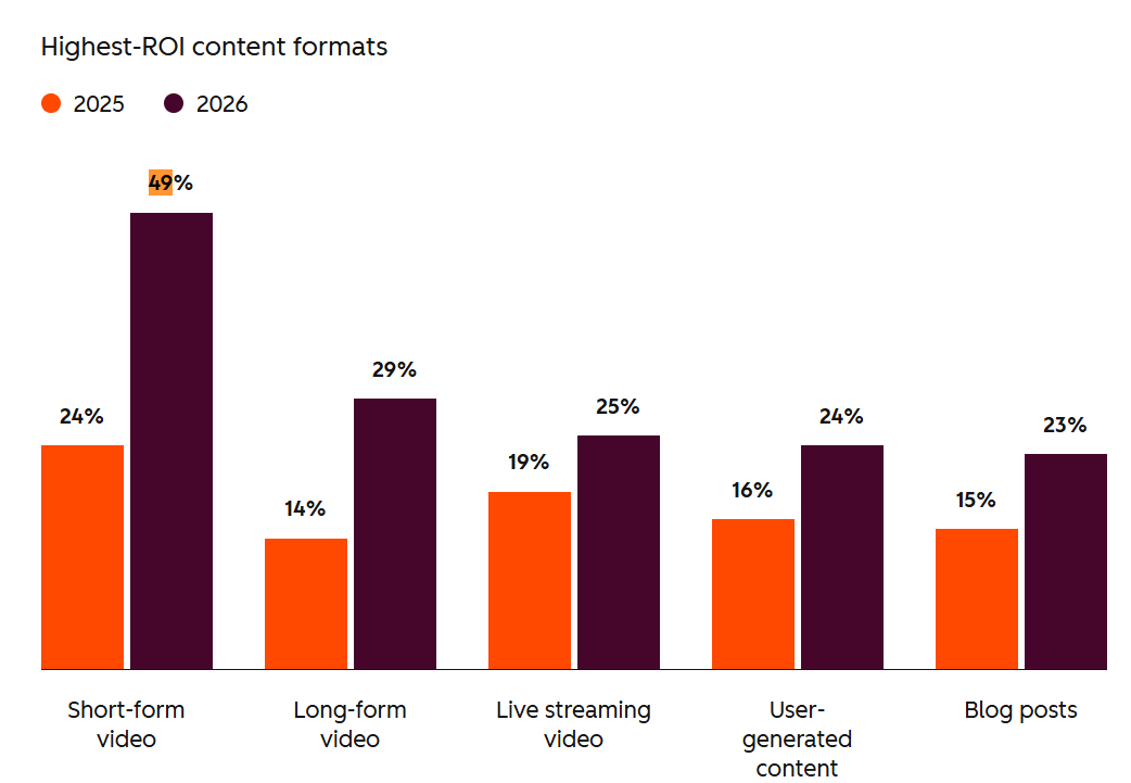 - 60%+ of companies now use short-form video—more than blogs or long-form content