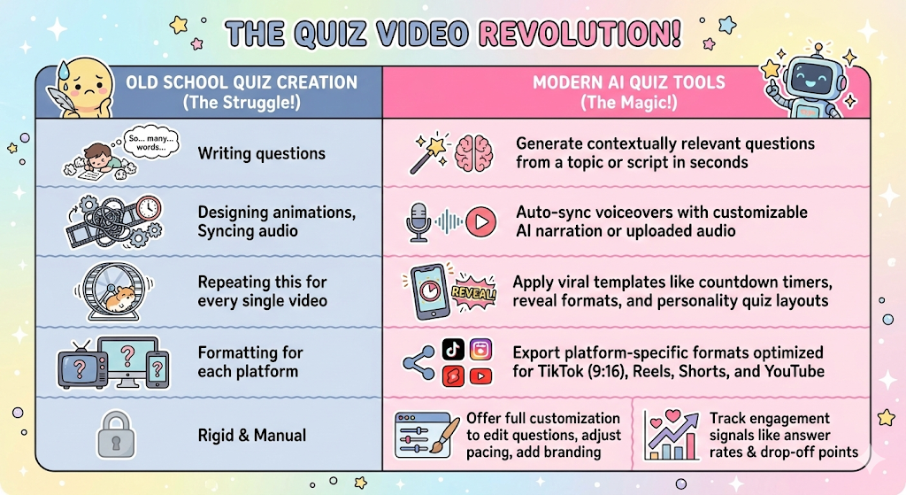 Welcome to the era where passive consumption is dead, and participation is the new currency of engagement. AI-powered quiz videos aren't just a trend; they're a fundamental shift in how audiences process, remember, and act on content. While traditional videos ask viewers to watch, quiz videos ask them to play. And when people play, they stay.
