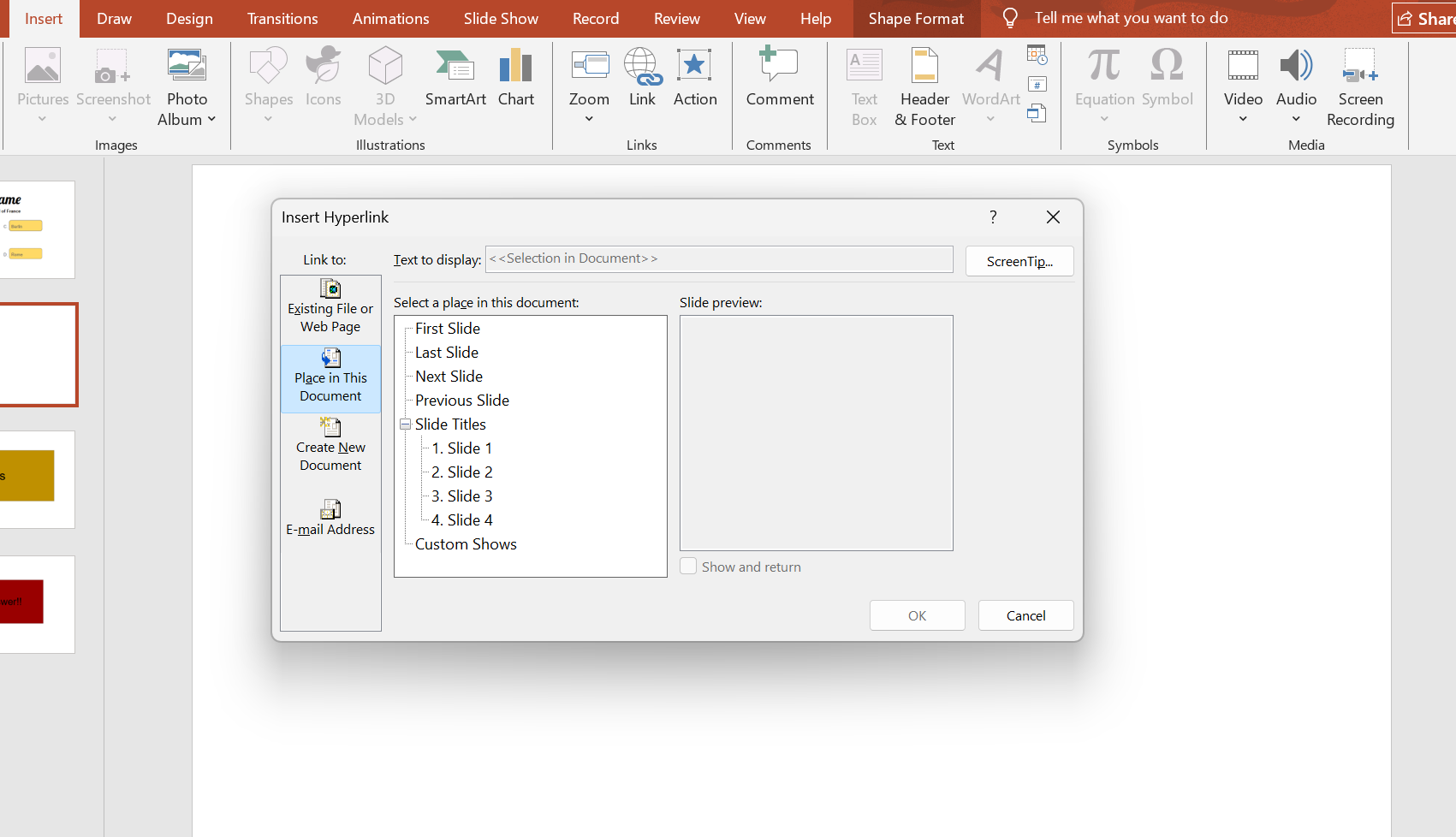 - Select the shape for the correct answer, then go to Insert > Action > Hyperlink to and choose "Next Slide" (which should be your Correct Answer slide).