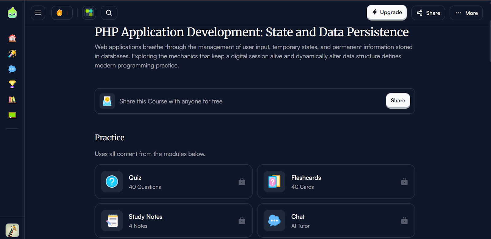 When it's not a good fit: Good for study/revision workflows; less ideal if your goal is content distribution.But quizzes can still be shared externally, but needs a plan upgrade.