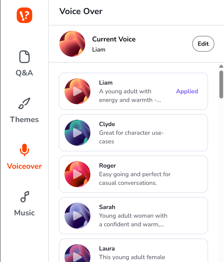 - Once your video is generated, open the left panel and navigate to the Voiceover section.